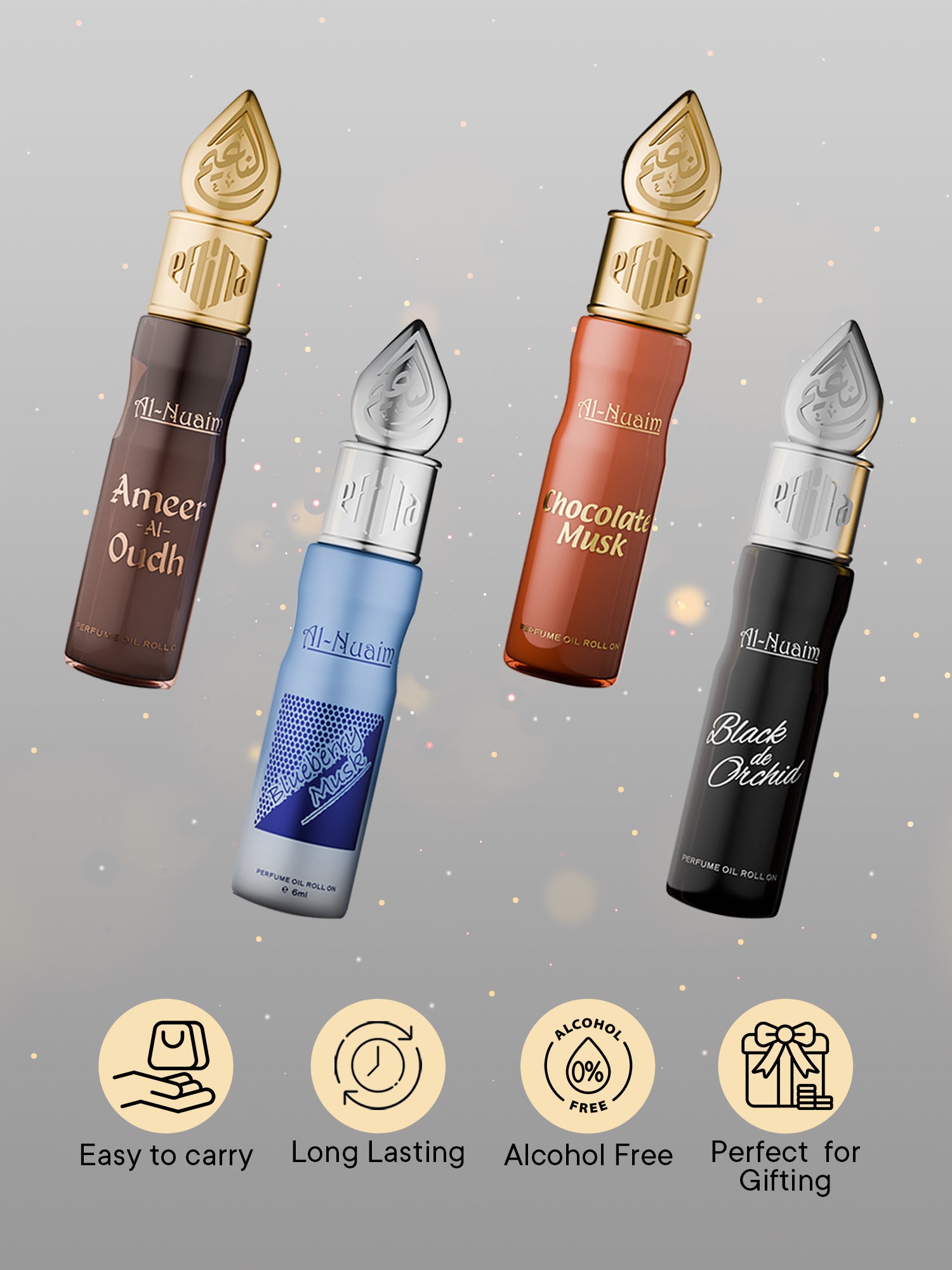 This luxurious collection features four signature fragrances: Black De Orchid, Chocolate Musk, Blueberry Musk, and Ameer Al Oudh, all beautifully presented in one stunning gift box.