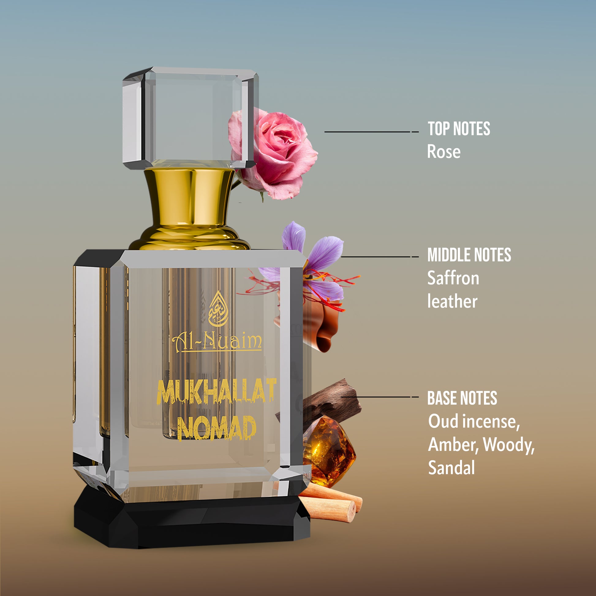 - Base Notes: Amber, Musk, Agarwood (Oudh)