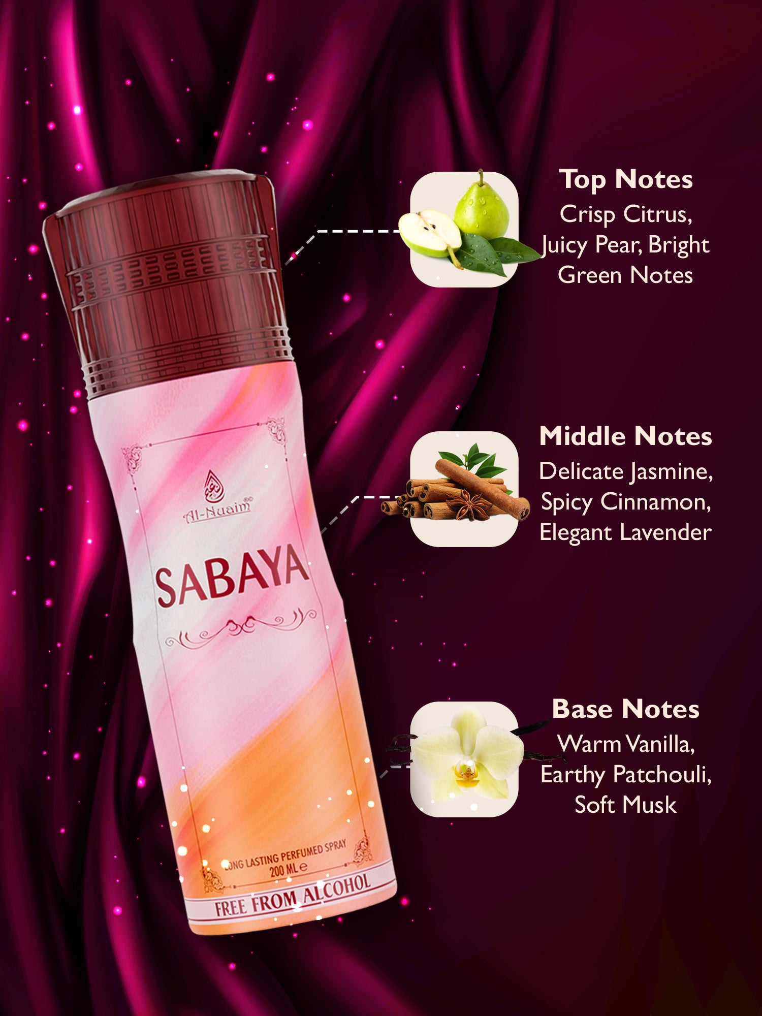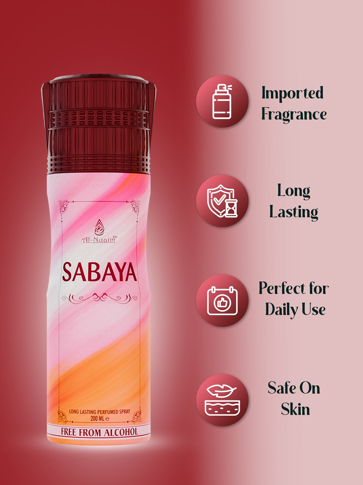 - Sabaya Perfumed Spray is a unique fragrance that offers an exotic and sensual scent. Its scent has hints of jasmine, sandalwood, and rose, creating a pleasant, long-lasting aroma. It is easy to apply and provides a feeling of freshness and invigoration. The unique scent of Sabaya Perfumed Spray will make you feel confident and attractive.